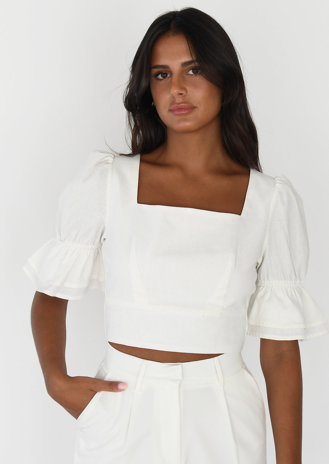 Top en lin manches bouffantes