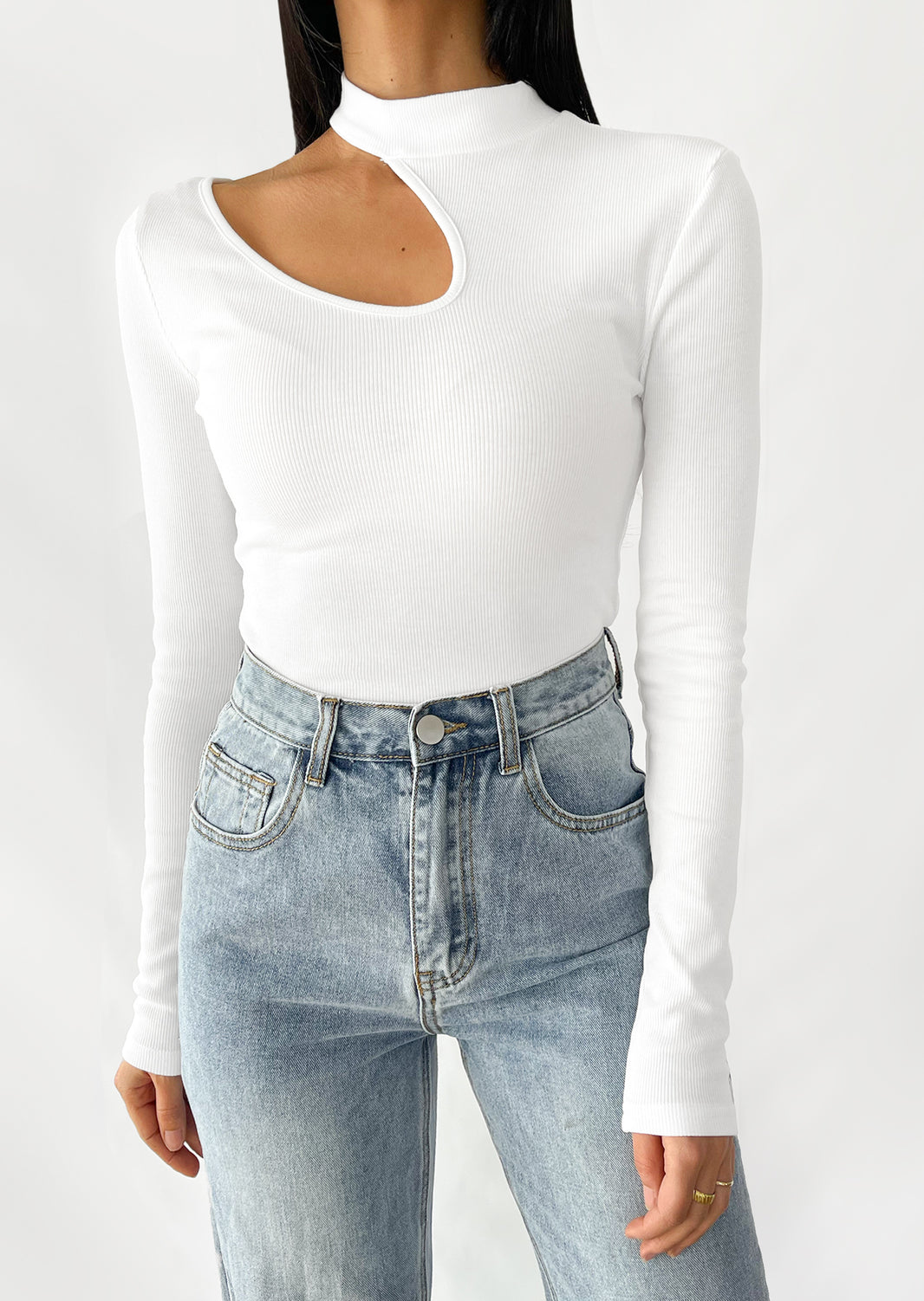 Ribbed knit cutout detail jumper in white