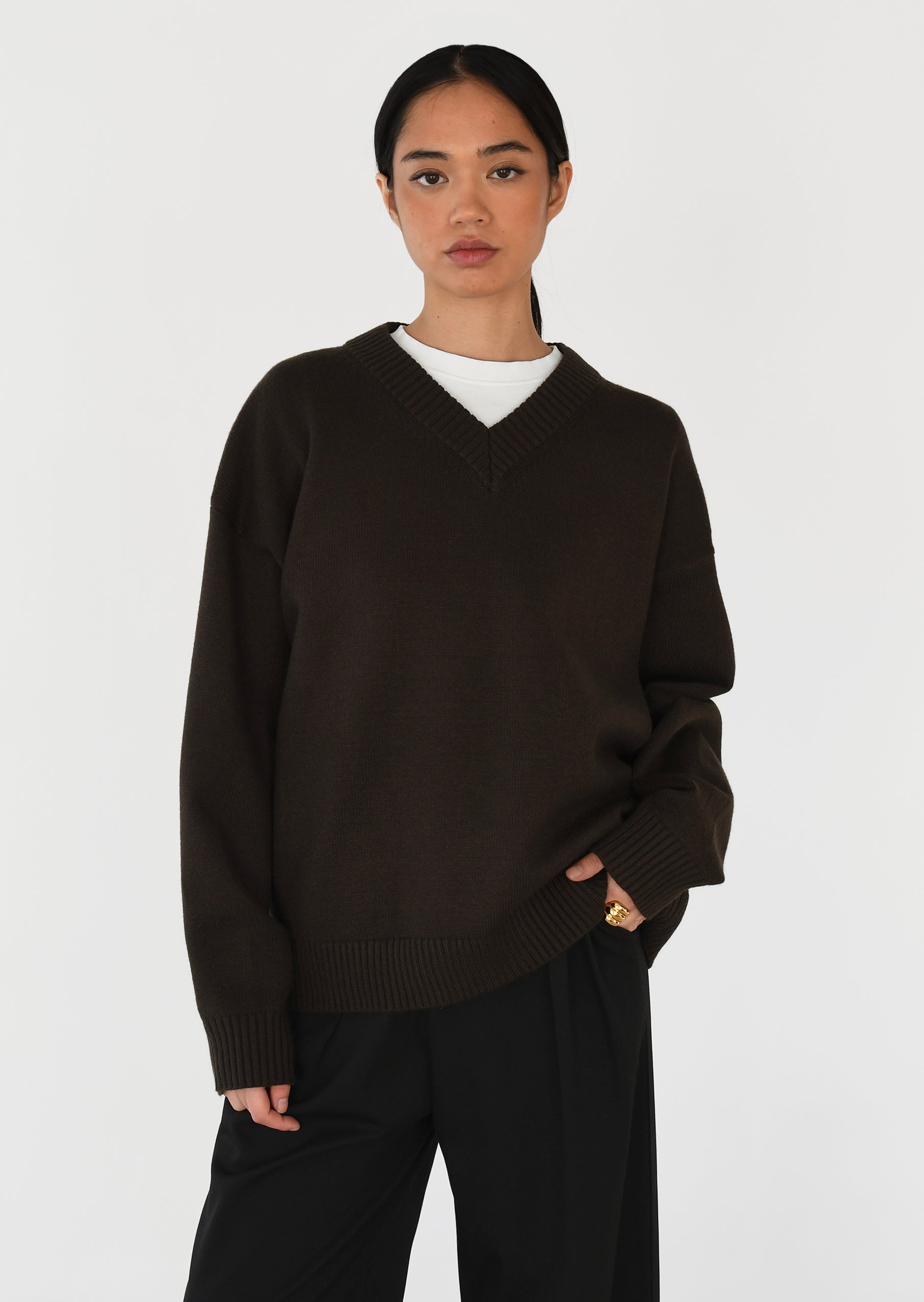 V-neck knit sweater