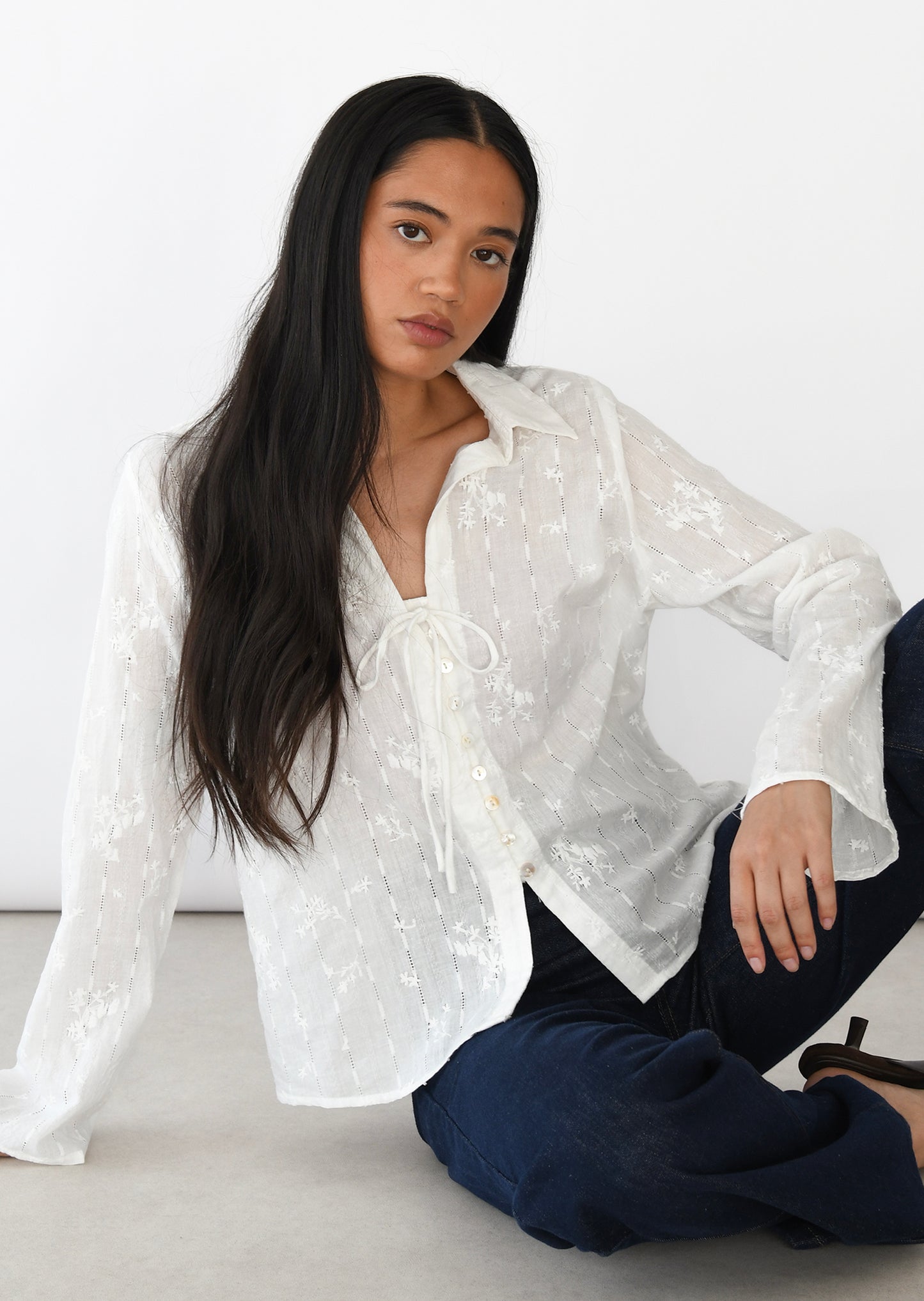 Blouse brodée boutonnée