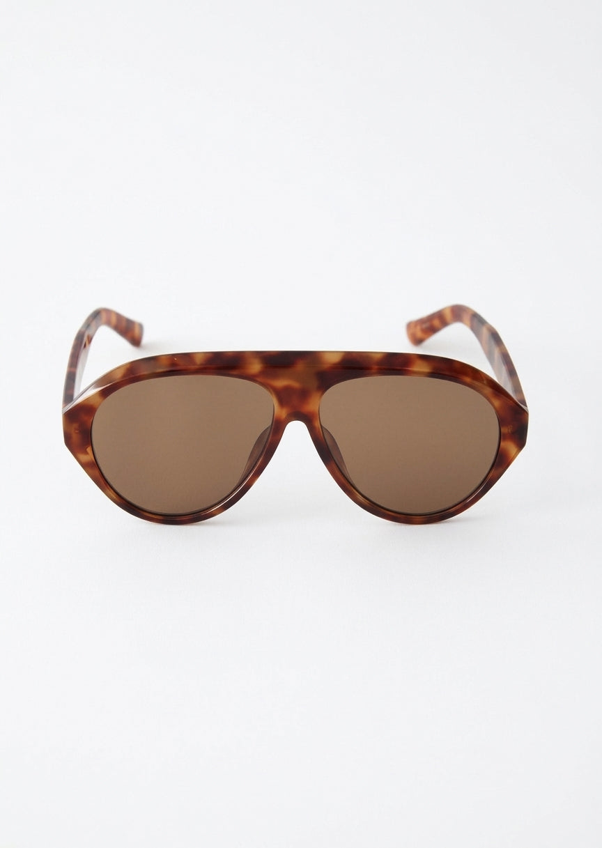 Lunettes de soleil marron clair à motif écaille dotées d'un design oversize et monture arrondie style aviateur pour un look rétro.